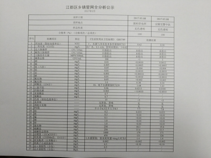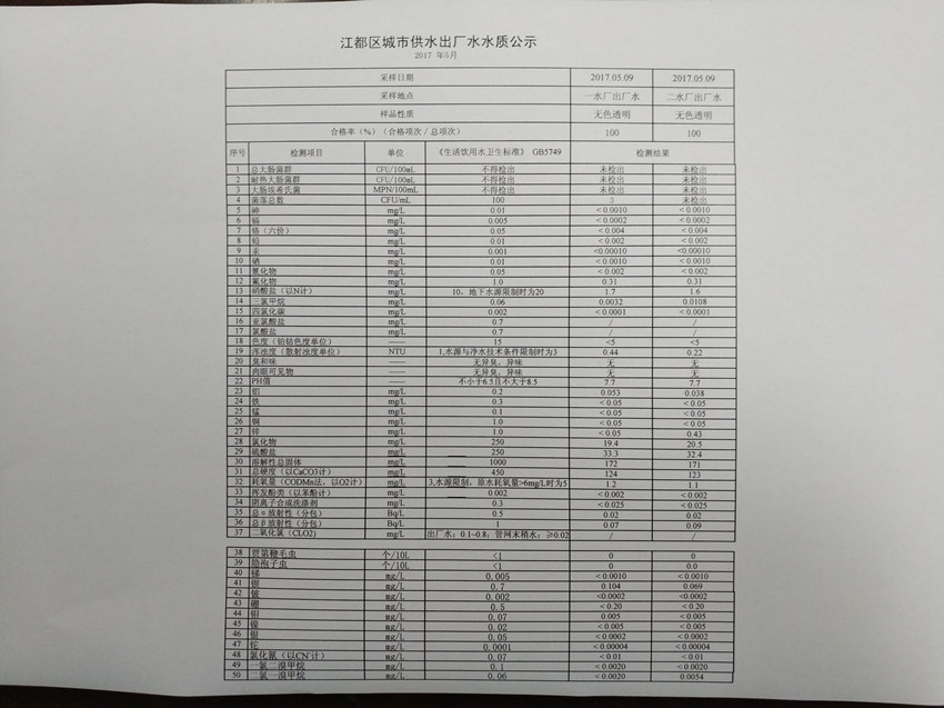 水質(zhì)公示
