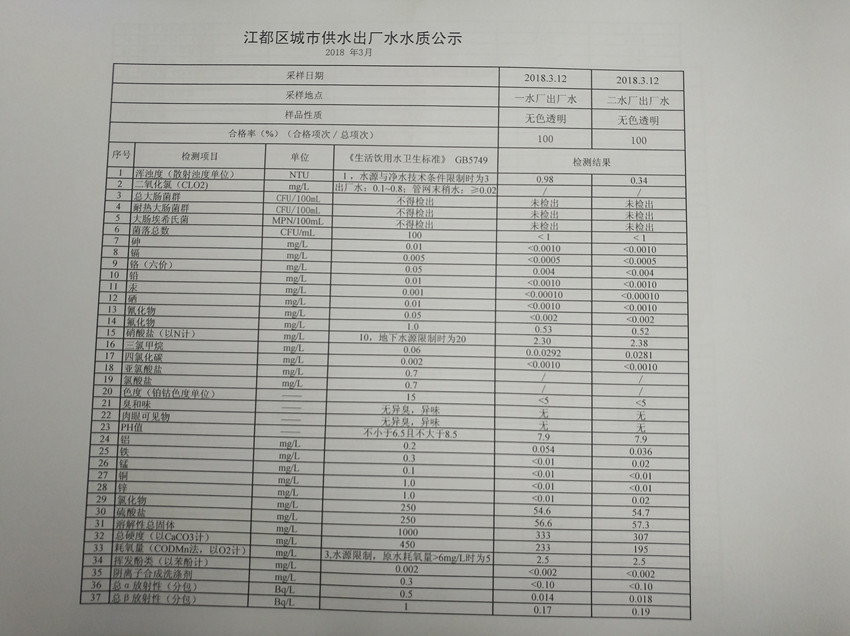 水質(zhì)公示