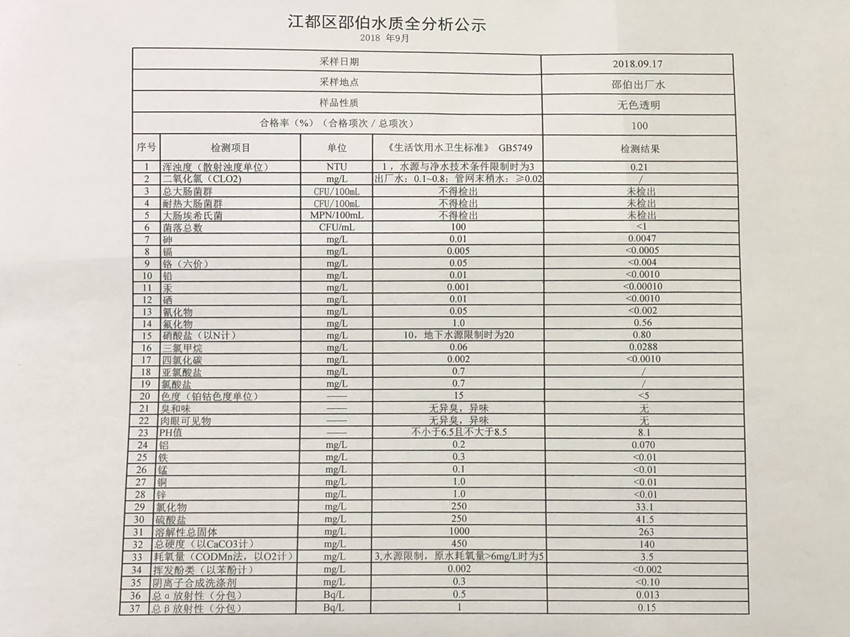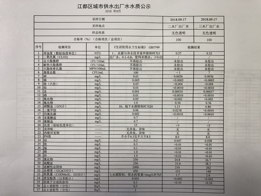 水質(zhì)公示