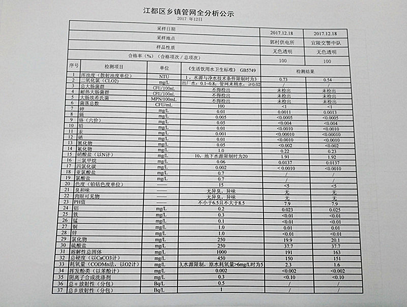 2017年12月江都區(qū)鄉(xiāng)鎮(zhèn)管網(wǎng)全分析公示
