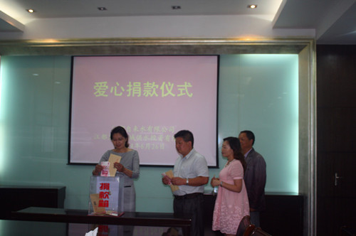 近日,區(qū)自來水公司、惠民公司主動(dòng)結(jié)合黨的群眾路線教育實(shí)踐活動(dòng)“惠民實(shí)事工程”的開展,積極響應(yīng)市民觀察團(tuán)和小艷子志愿者協(xié)會(huì)的倡議,在公司內(nèi)進(jìn)行廣泛深入宣傳,組織廣大干部職工為武堅(jiān)鎮(zhèn)身患尿毒癥的女大學(xué)生凌金華進(jìn)行愛心捐款。在6月26日下午的捐款儀式上,公司領(lǐng)導(dǎo)和水益坊志愿者組織、三大創(chuàng)建班組(便民維修班、中心化驗(yàn)室、城區(qū)供水服務(wù)中心)以及勞模先進(jìn)代表踴躍帶頭,公司各部門干部職工積極參與,紛紛伸出援助之手,慷慨解囊,奉獻(xiàn)出自己的愛心,在不到1個(gè)小時(shí)的捐款活動(dòng)中,共募集12600元愛心善款。此筆捐款已于6月28日隨區(qū)市民觀察團(tuán)、小艷子志愿者協(xié)會(huì)、江都論壇的特別“愛心快車”送到正在上海住院治療的凌金華手中。